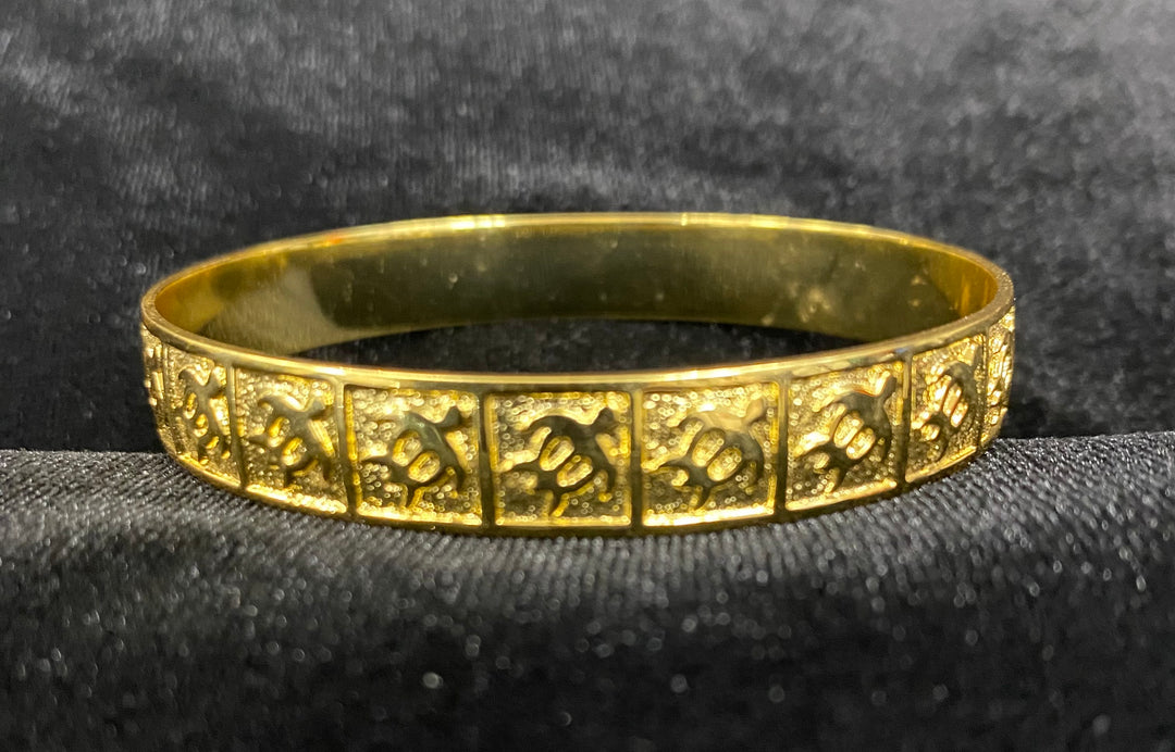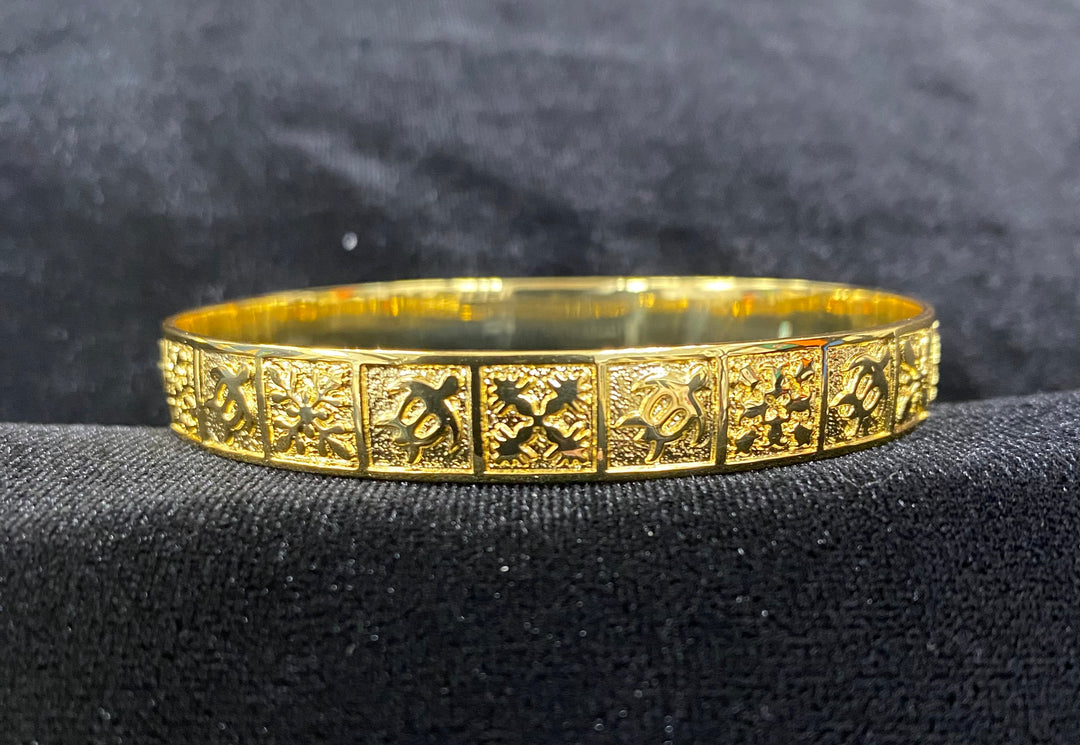 Hawaiian bracelets are available in 10mm and 28mm.They are handcrafted in 18K gold filled or silver filled copper bangles, depending on the design.