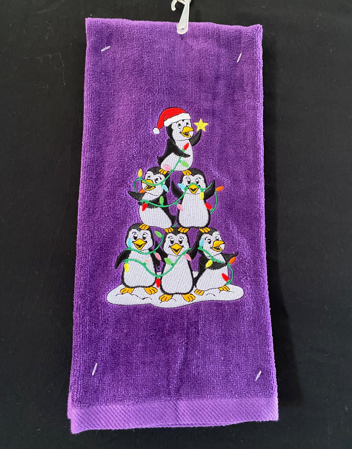 Dancing Santa and Penguins / Purple - $20.00 USD