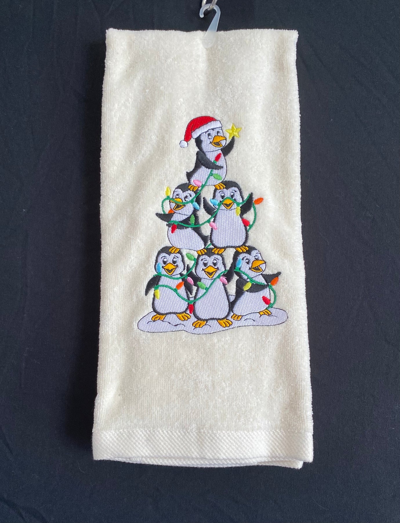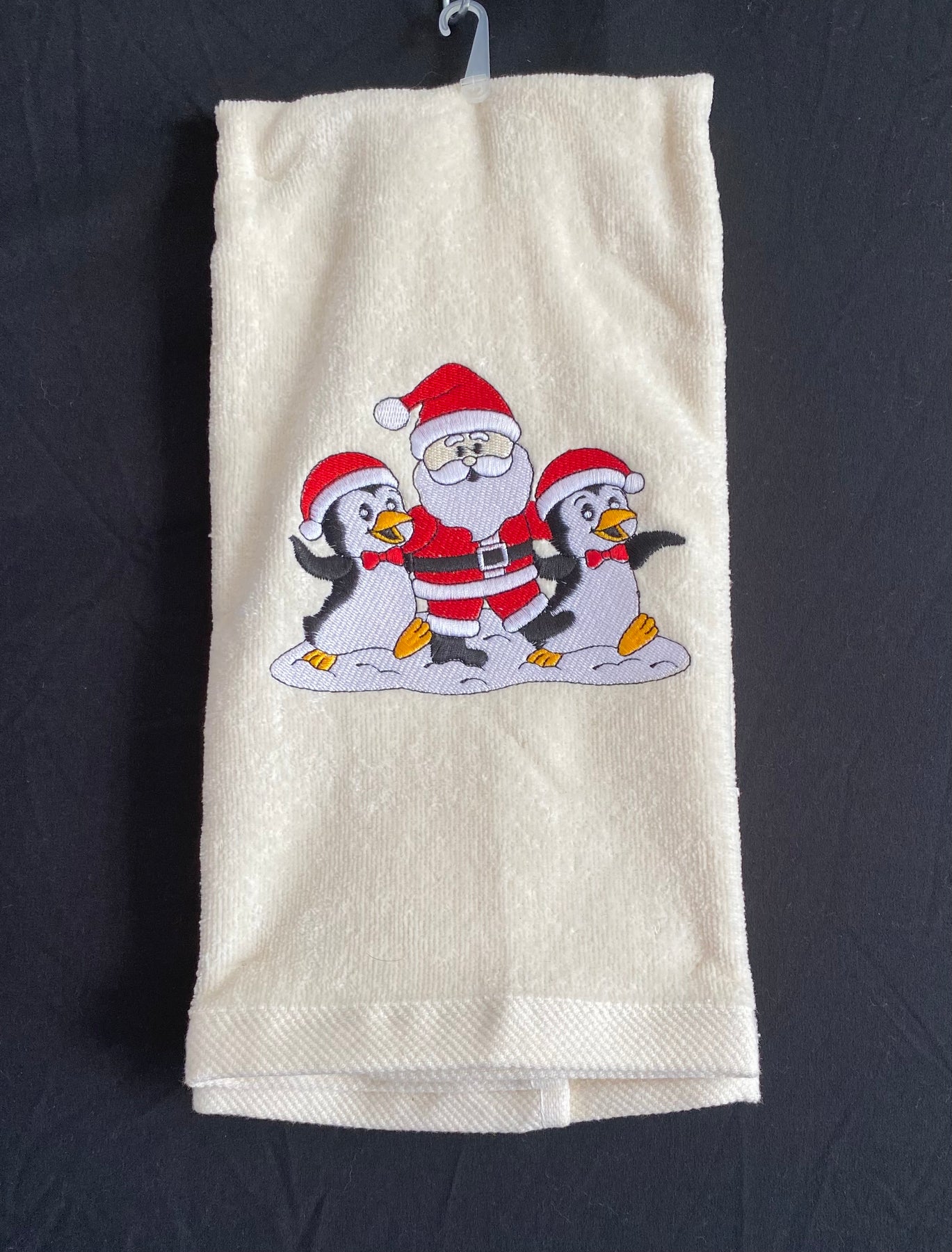 Dancing Santa and Penguins / Ivory - $20.00 USD